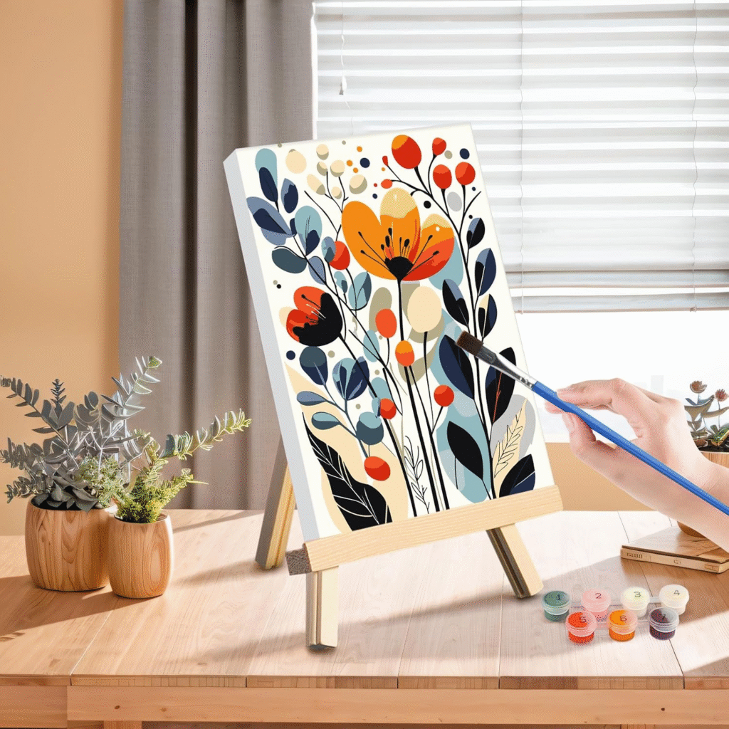 Adult Paint by Number Kit with Wooden Easel – 4 pack