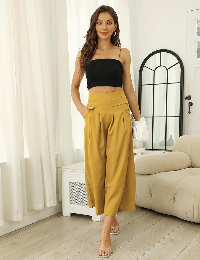 Bianstore Women’s Culottes Linen Cropped Pants
